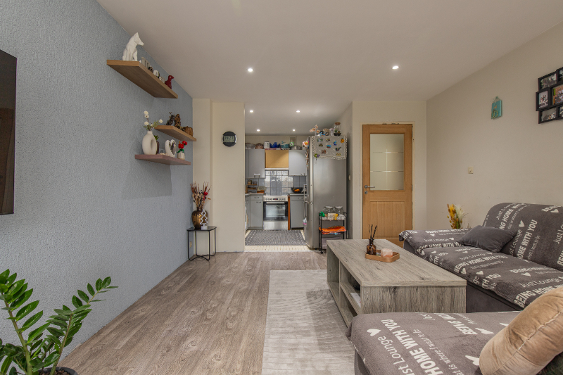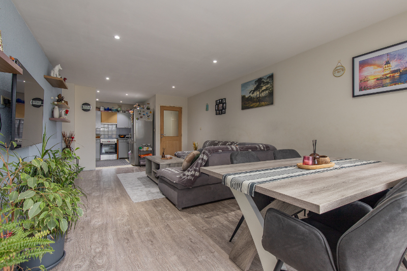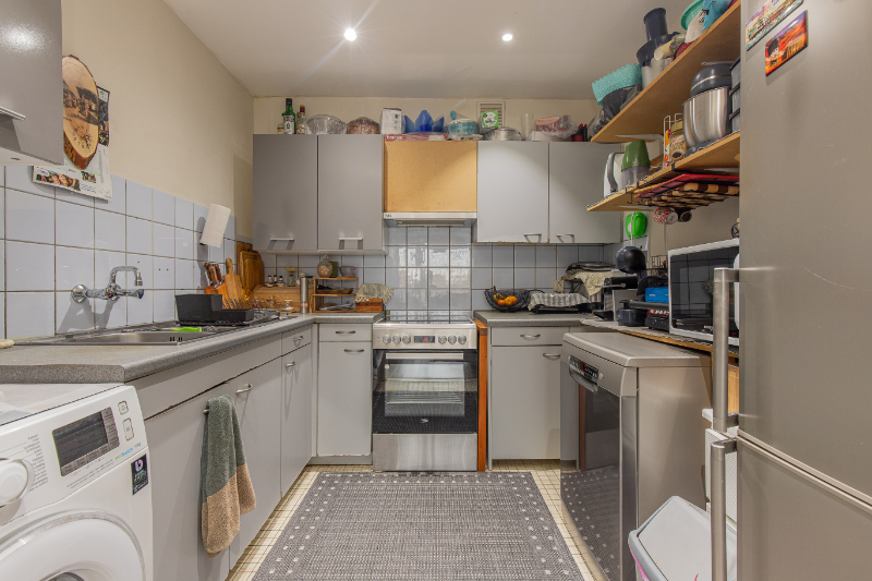 De ruime, lichtrijke leefruimte vormt samen met de functionele, goed uitgeruste keuken het hart van het appartement – perfect voor wie houdt van gezellig wonen en graag gasten ontvangt. Extra opbergruimte vind je in de praktische berging in het appartement zelf, aangevuld met een privékelder voor nog meer stockage.