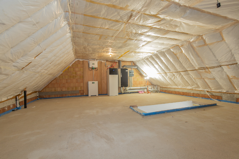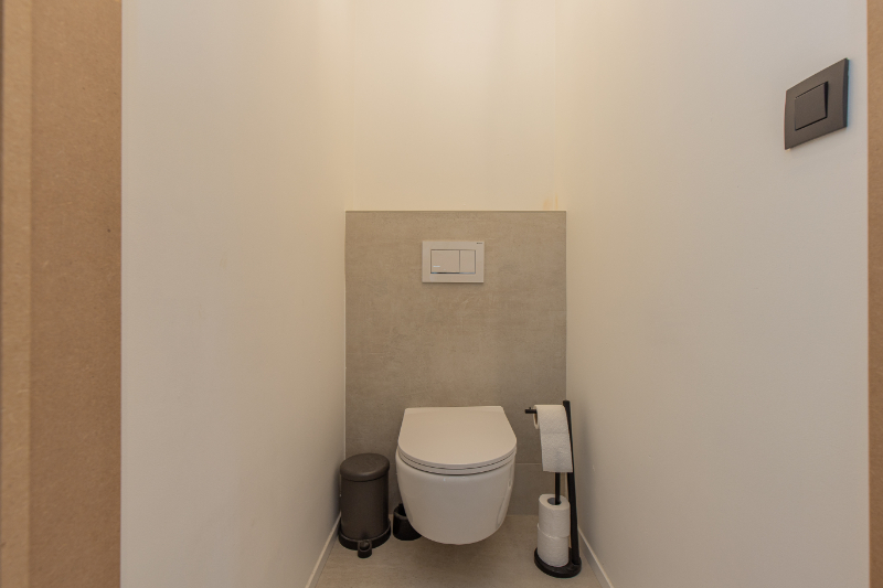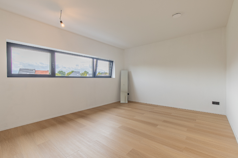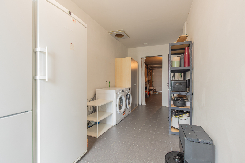 De zolder, bereikbaar via een vaste trap, kan volledig naar eigen wens ingericht worden. Alle technische voorzieningen zijn hier aanwezig, waaronder de lucht-water warmtepomp met vloerverwarming, het ventilatiesysteem type D, de omvormer van de 18 zonnepanelen en de batterij.