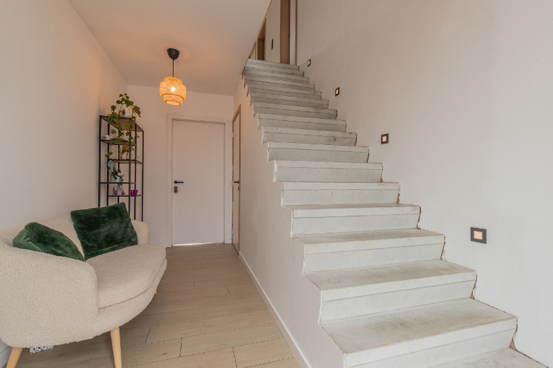 Deze woning is uiterst energiezuinig (BEN- woning / 2kwh/m² op jaarbasis) en duurzaam. De zonnepanelen en batterij zorgen voor een lager energieverbruik en een ecologisch verantwoorde woonomgeving, terwijl de regenwaterput van 7.500 L aangesloten is op de toiletten en buitenkranen. Andere troeven zijn de volledig betonnen gewelven, de conform elektriciteit tot 2047, de oprit voor 2 wagens en de ruime inpandige garage.